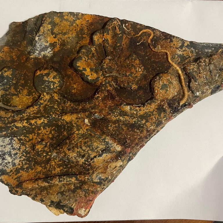 Photo 1 : Ardoise à motifs gravés. Découvert à vue, par 10 mètres de fond. Dimensions 20cmx15 cm environ. (VG-2025)
